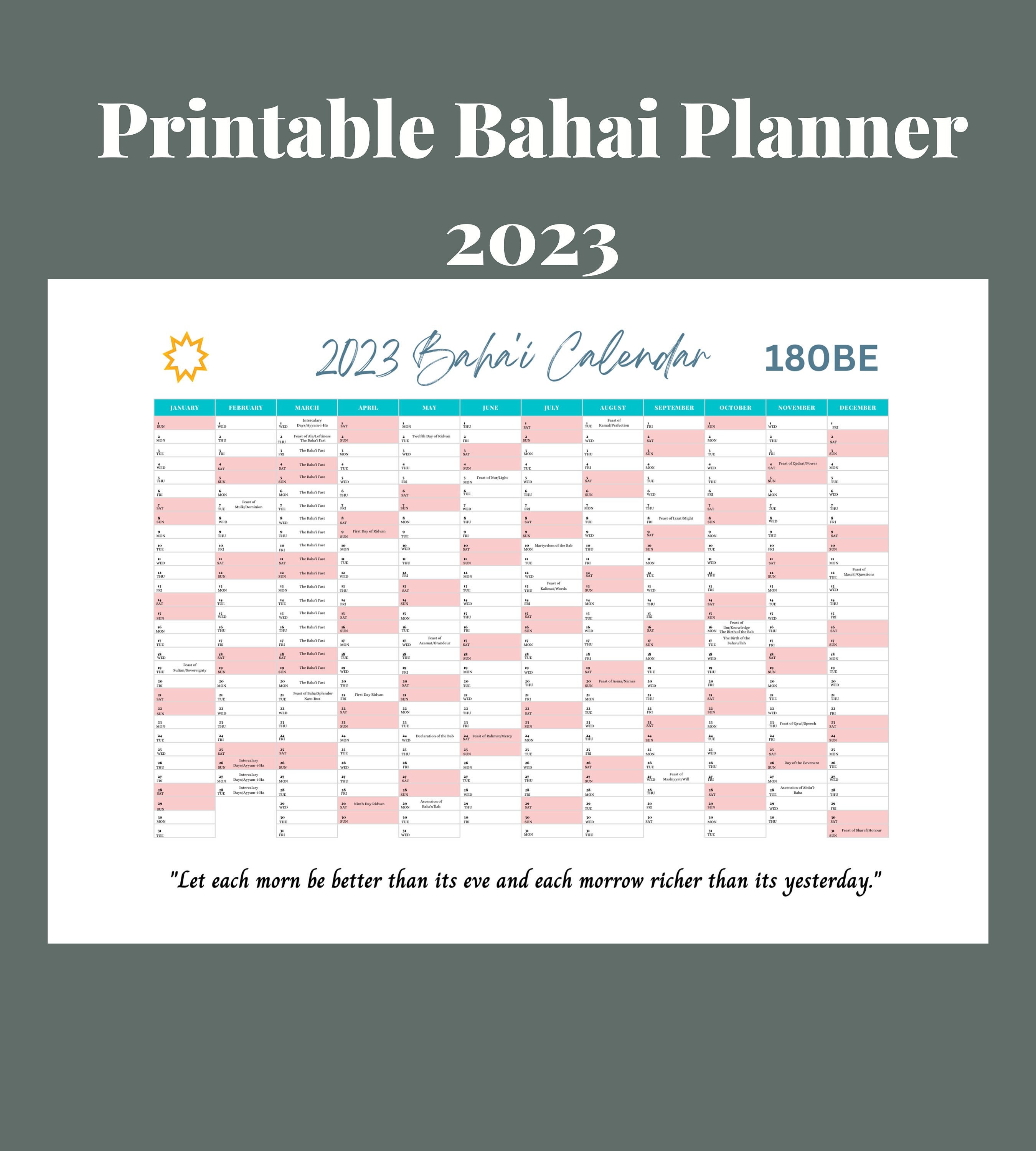 bahai kalender 2024 American/Baha’i 2023 2024 Wall Calendar Bahai Resources: The Baha’i faith is as independent a religion as any of these, but it too belongs to a continuum of faiths. The Baha’i teachings grew out of a religion called Babism; from what religion did Babism . CHARLOTTESVILLE, Va. – Virginia will compete at the 2024 Baha Mar Hoops Bahamas Championship next November at the Baha Mar Convention, Arts & Entertainment Center. Kentucky-based bdG Sports announced .