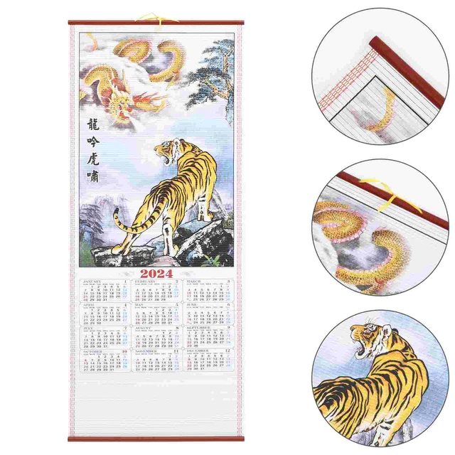 Wall Calendar 2024 Monthly Large Chinese Scroll Dragon Year Office