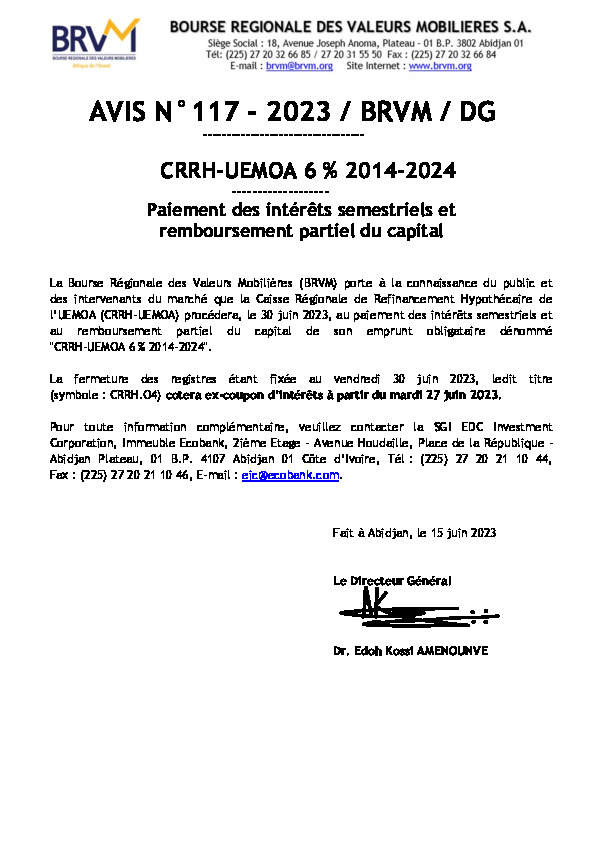 Documents du dossier: Bourse Régionale des Valeurs Mobilières
