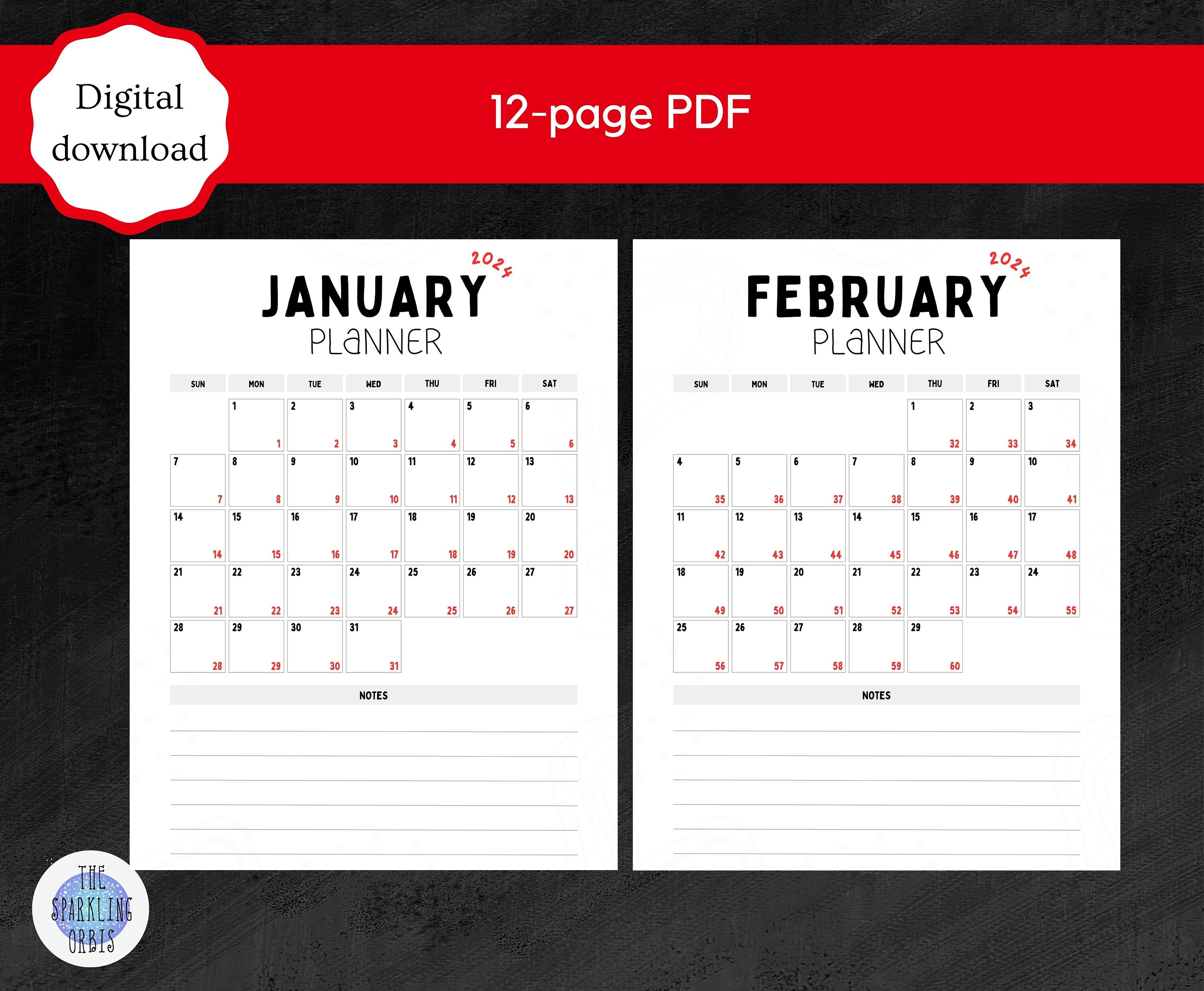 Calendrier mensuel imprimable 2024 Calendrier julien Etsy France