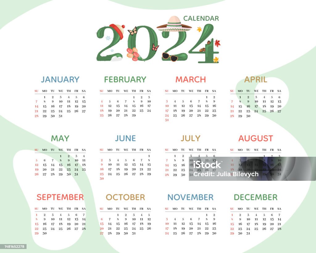 Calendar 2024 Horizontal Template With Cactus Number Of The Year